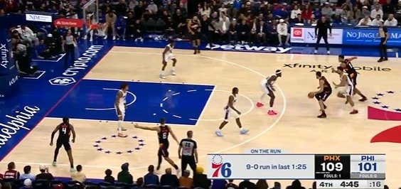 开云体育官方app-奋力追赶!76人1分25秒内外开花打出9-0攻击波 追到个位数分差