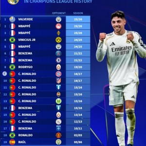 3月12日讯 在本轮欧冠皇马3-0击败曼城的比赛中,巴尔韦德上演帽子戏法,这也是皇马球员第19次在欧冠做到这一点。德转也...