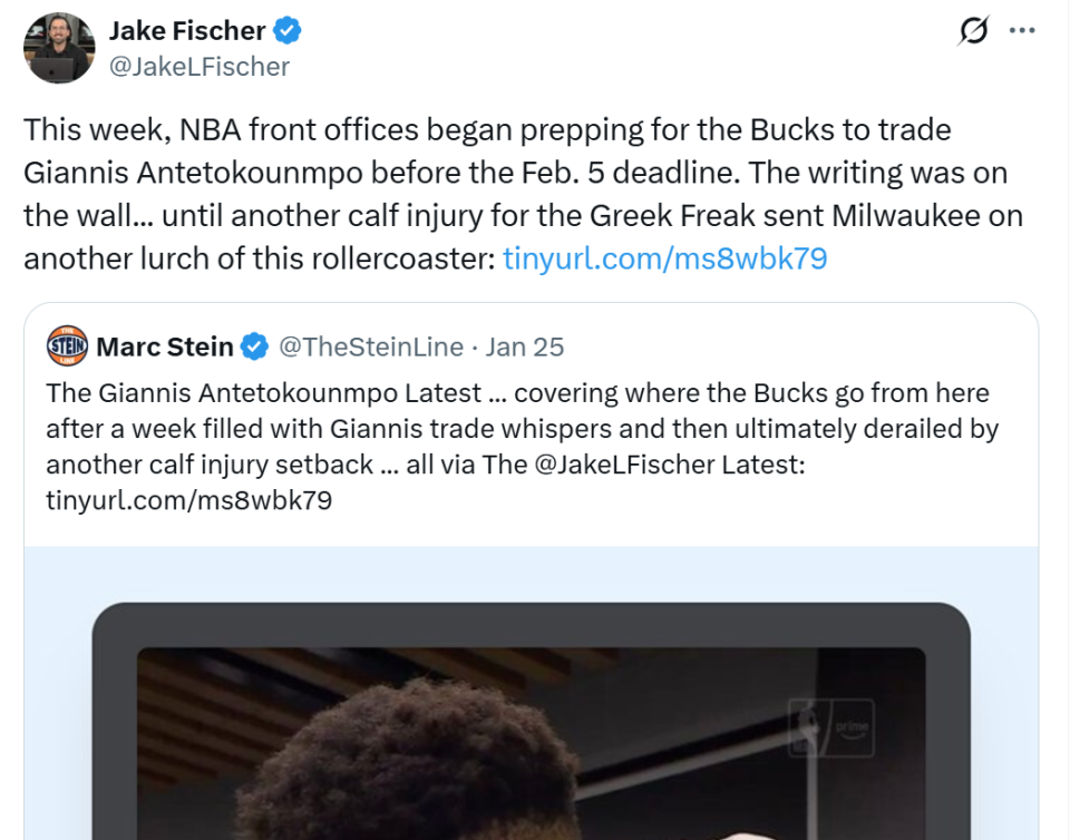 消息来自于美媒《The Stein Line》名记Jake Fischer对于字母哥潜在价值的长文分析。