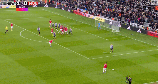 然而,纽卡并没有将领先延续到半场结束。在45+9分钟,卡塞米罗接B费任意球头球破门,将比分扳平。